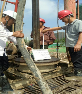 監理項目部進駐現場伊始,現場監理人員就充分熟悉圖紙設計文件,根據相關規范要求以監理規劃為指導,編制了相關監理細則用以指導現場監理工作,總監李江洲在結合了現場施工機械、施工人員、場地、工程進度要求等的情況下,對現場監理人員進行了分工,落實各監理人員的崗位職責及工作制度,在管樁施工過程中,現場監理人員根據設計文件、地質勘察報告及相關規范要求,對管樁施工進行控制,嚴把質量關。由于地質勘察報告與現場存在較大差異,管樁施工初始出現了較多的爆樁及欠送情況,監理人員對現場施工相關數據進行如實記錄,并多次召開專題會議,會同設計單位、勘察單位進行分析,制定了后續施工措施,并督促施工單位進行落實。灌注樁施工中,監理人員根據相關規范及圖紙要求,對灌注樁各個環節進行質量控制。安全管理方面,針對樁基階段安全文明的特殊性,施工與監理單位一起結合目前安全管理形勢及現場實際情況制定了相應的安全管理制度,并落實在日常安全管理工作中。