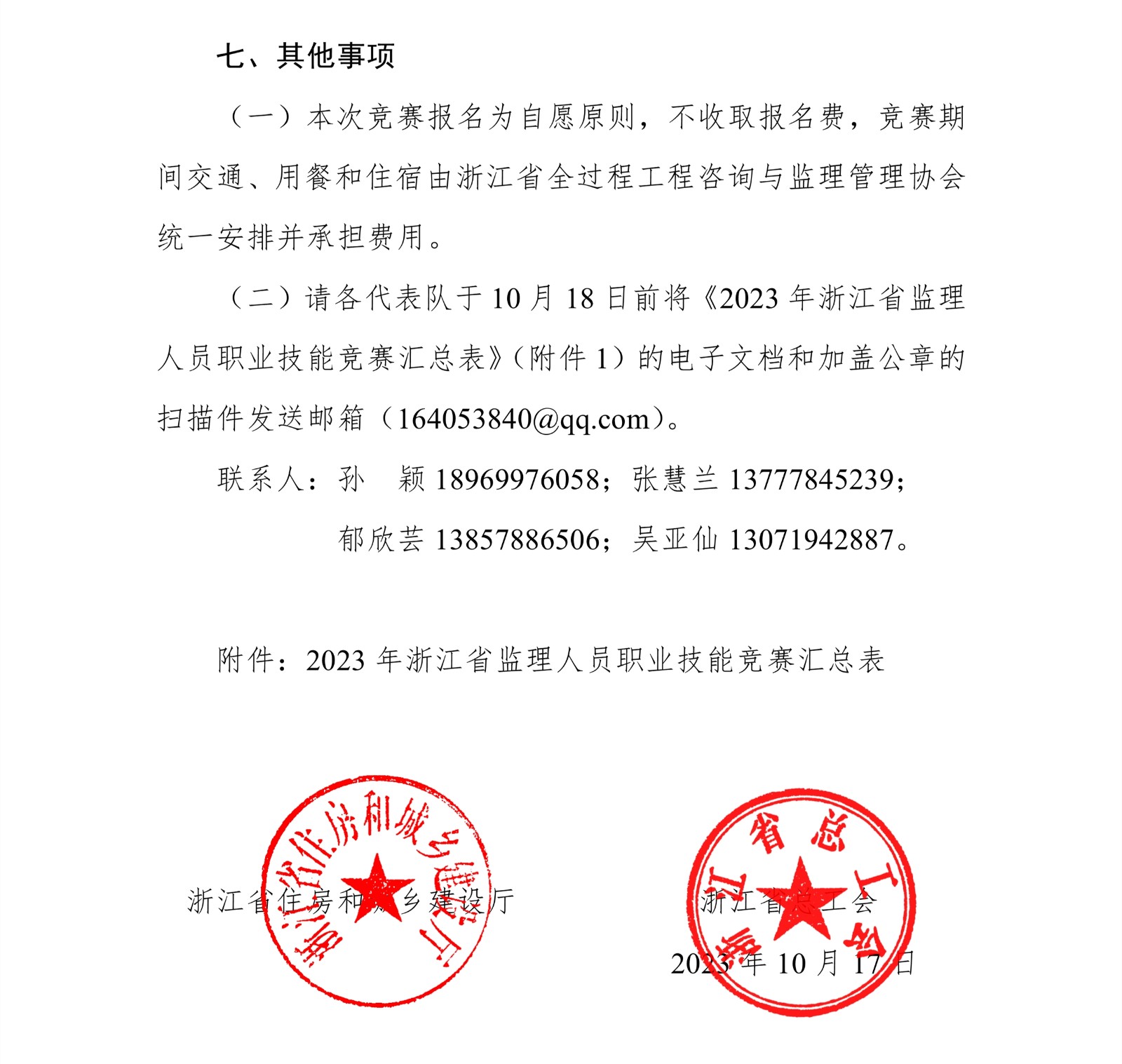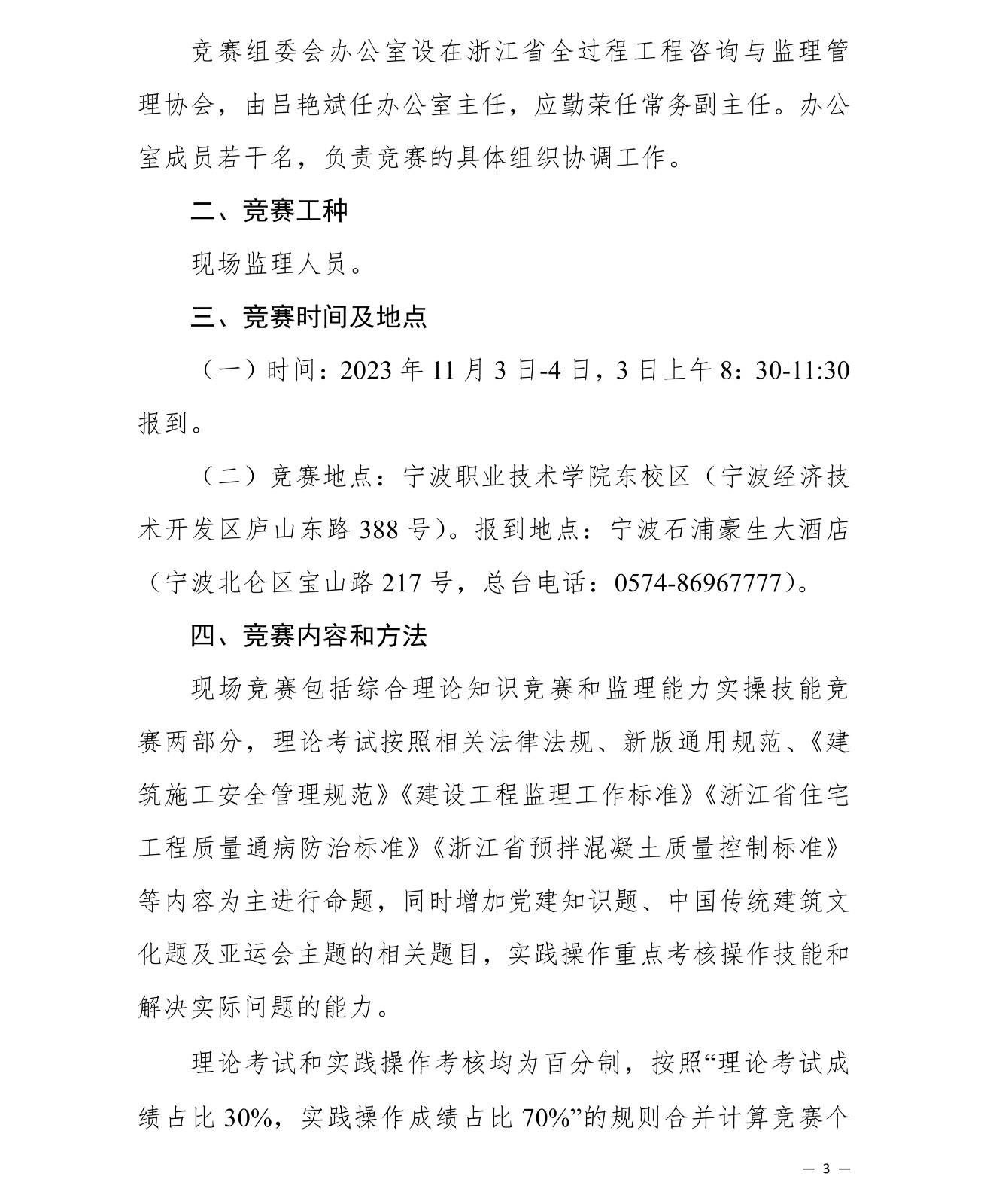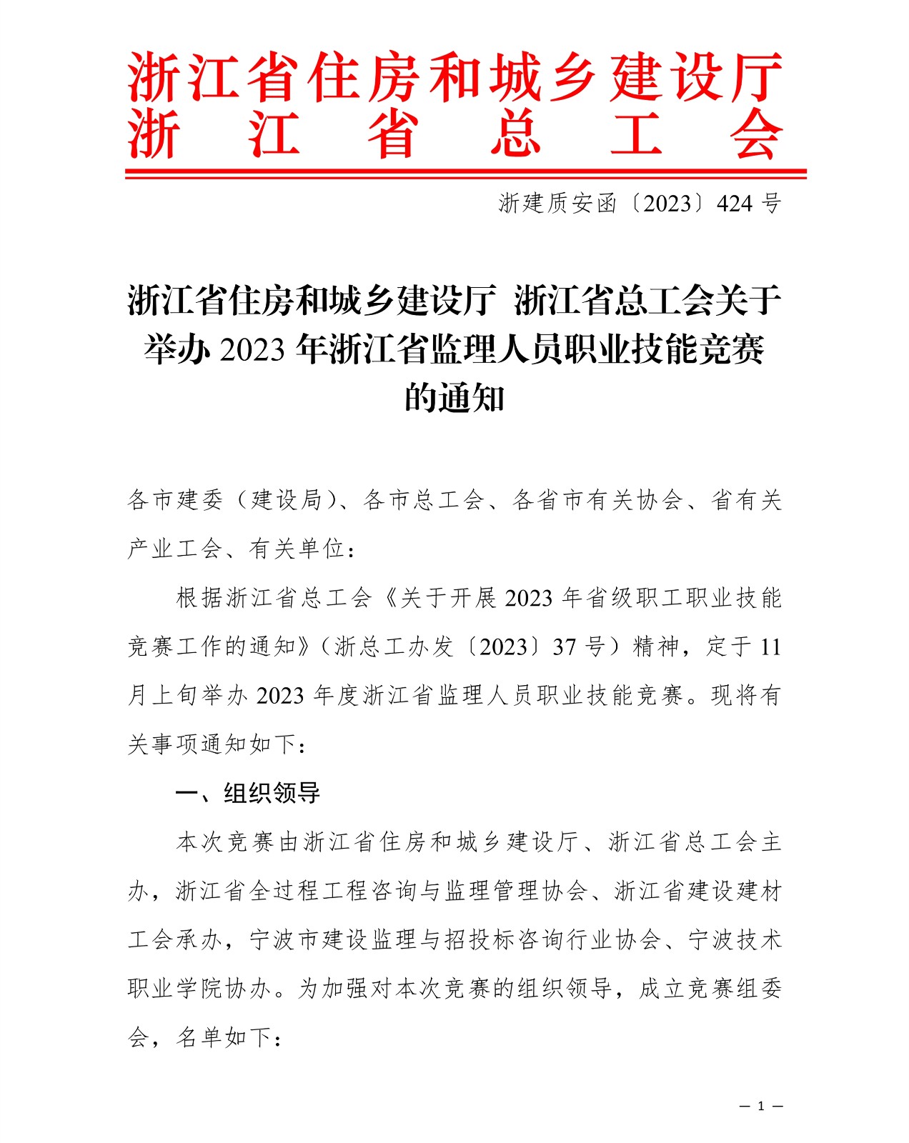 浙江省住房和城鄉(xiāng)建設(shè)廳 浙江省總工會(huì)關(guān)于舉辦 2023 年浙江省監(jiān)理人員職業(yè)技能競(jìng)賽的通知